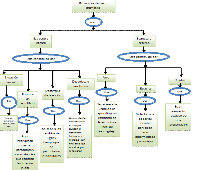 Observa el siguiente mapa conceptual que hace referencia a la estructura del texto dramático.